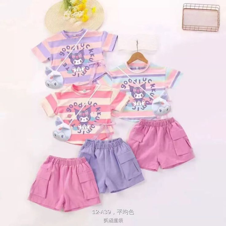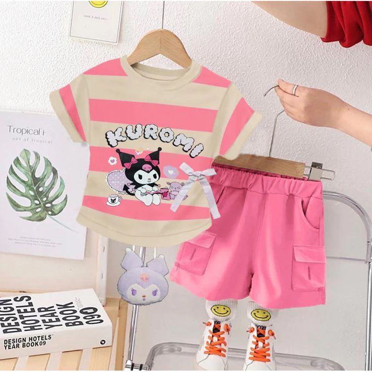 Baju Setelan Anak Perempuan Setelan Kaos Celana Cargo Pendek Karakter Kuromi Usia 1-5 Tahun