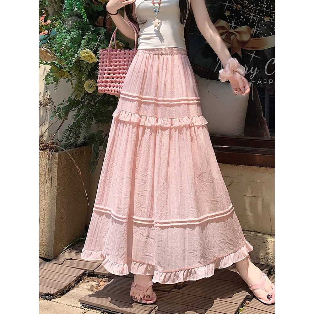 Longskirt Korea Rok Wanita Rayon Slub Elegan