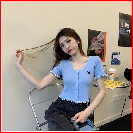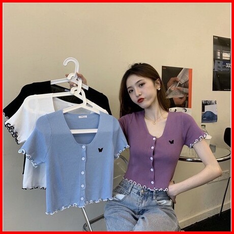 Gavinda Crop Premium Dropneedle Top Butterfly Wanita Atasan Crop Top Wanita