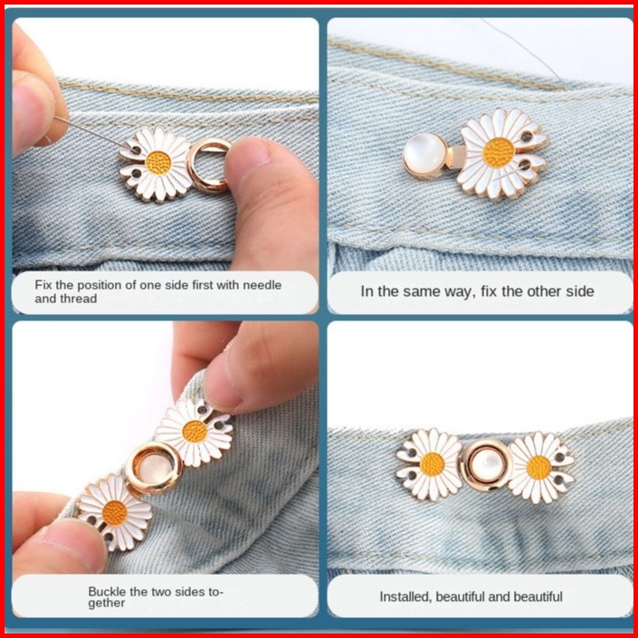 Sms Kancing Jeans Simple Karakter Kait Pengecil Lingkar Pinggang Celana Kancing Celana Jeans Model Bunga Daisy Waist But