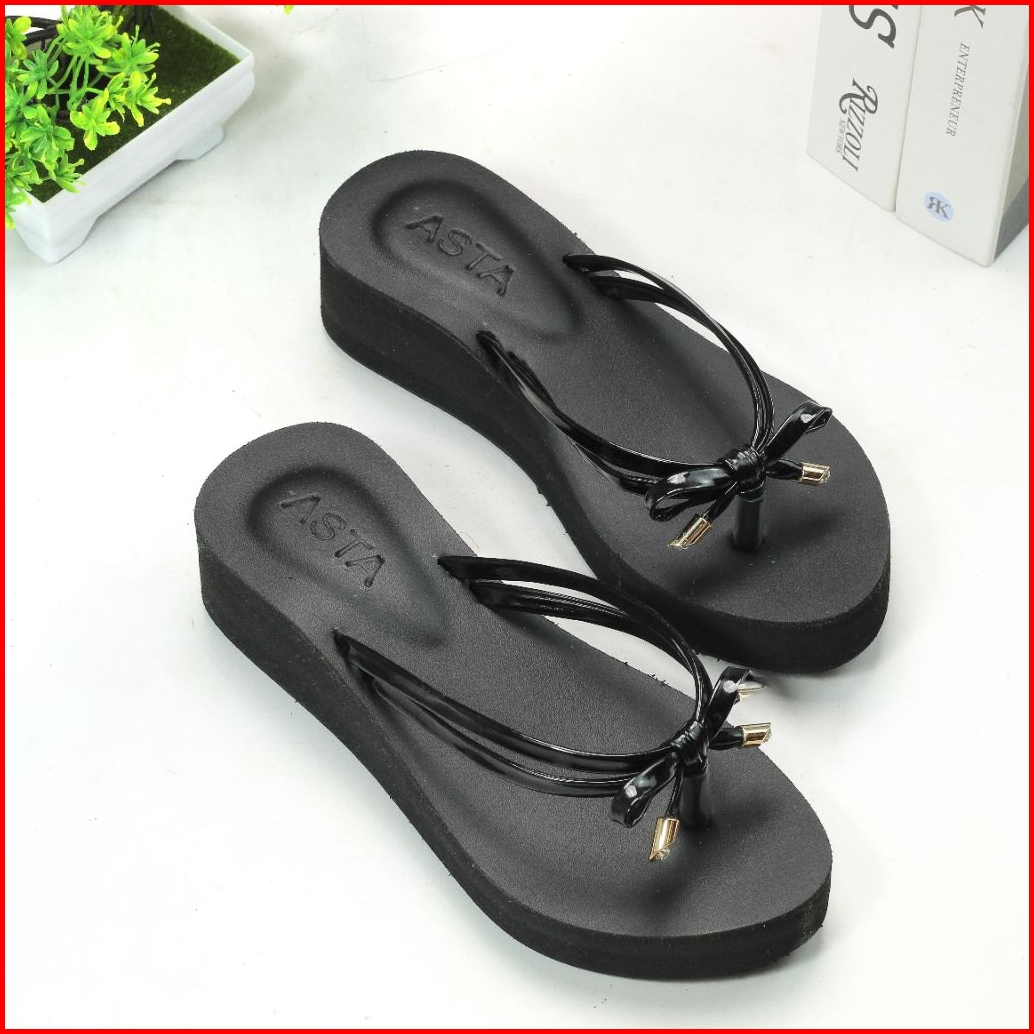 Sandal Wedges Jepit Wanita Elegan Kekinian Hak Tinggi Terbaru Variasi Pita Kupu Kupu
