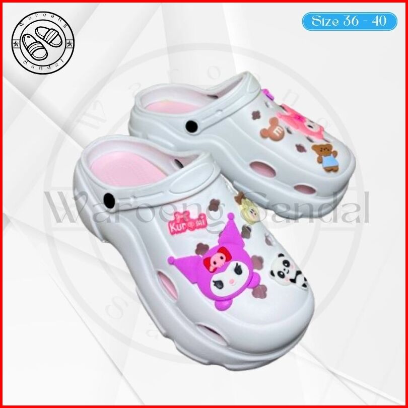 Sandal Jibbitz Wanita Kasual Terbaru Aksesoris Kuromi Bahan Karet Tebal Anti Licin