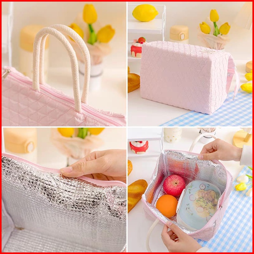 Tas Bekal Candy Color Lunch Cooler Bag Box Makanan Aluminium Kotak Makan Anak - Hw105