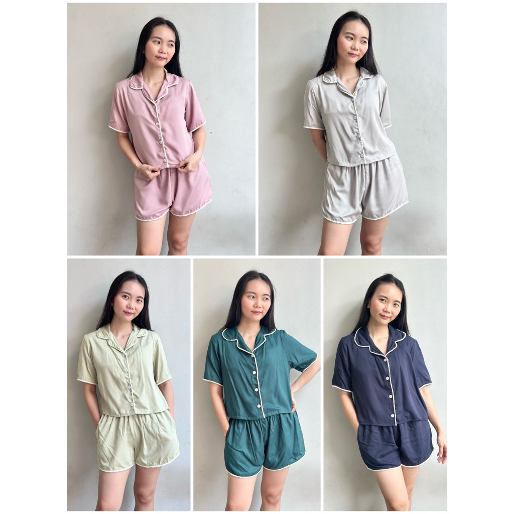 (S-XXL) MILLO BASIC MERCIA Pajamas Rayon Setelan Baju Tidur Piyama Wanita