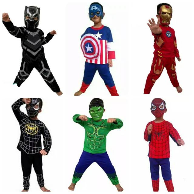 GRATIS TOPENG/ /Kostum baju anak superhero avenger hulk/spiderman/ captain america / iron man