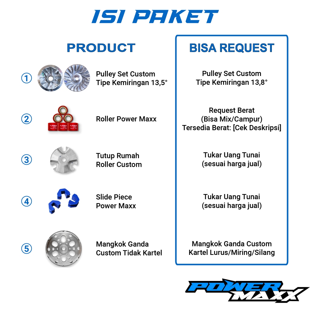 Paket Full Upgrade Kirian Cvt Nmax 155 Aerox 155 Lexy 125 Old New - Pulley Set ( Rumah Roller & Kipas Pulley ) + Mangkok