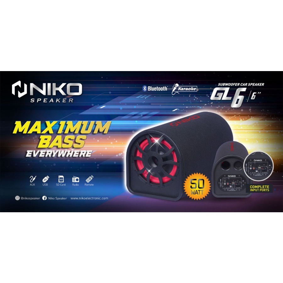 Speaker Niko GL6 Bluetooth 6inc / speaker tabung Speaker Bass Subwoofer GL 6 / speaker karaoke oke 6 inch 50 Watt speake