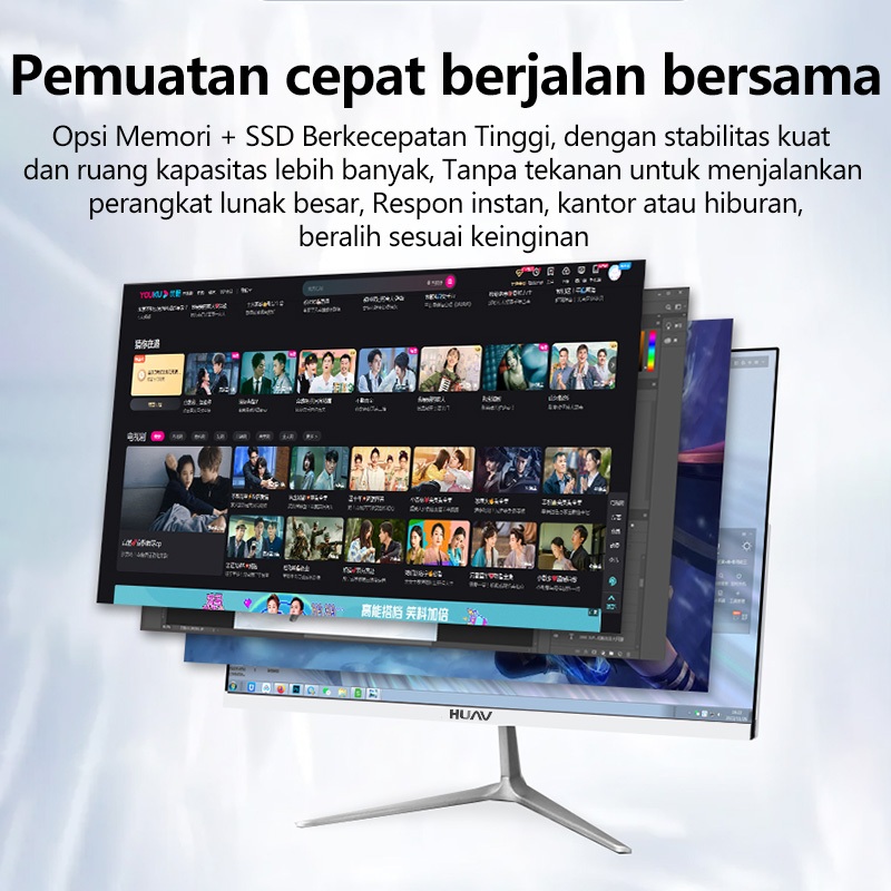 HUAV Komputer Full Set All-in-One PC Baru, Prosesor Core i7, konfigurasi tinggi, Layar 22/24 Inci Pilihan,RAM 8/16G,SSD 1TB,Untuk Rumah, Belajar, Kantor, gaming,dan Hiburan