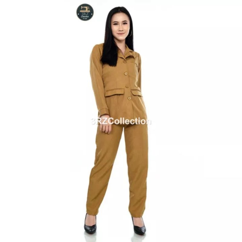 Setelan Baju Seragam Dinas PNS Pemda Blazer Guru Coklat Wanita Rok dan Celana Panjang