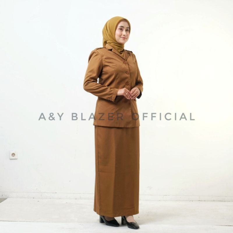 011 KERAH JAS LOS A&Y Blazer Baju Seragam Pemda PDH Wanita warna Khaki Tua | SEMIWOL | Seragam Guru PNS Pegawai Wanita Pemda tua