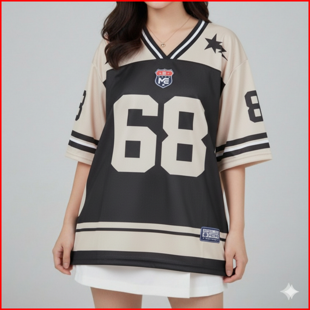 Baju Jersey Combi Hitam 68 Streetwear Oversize Number Premium