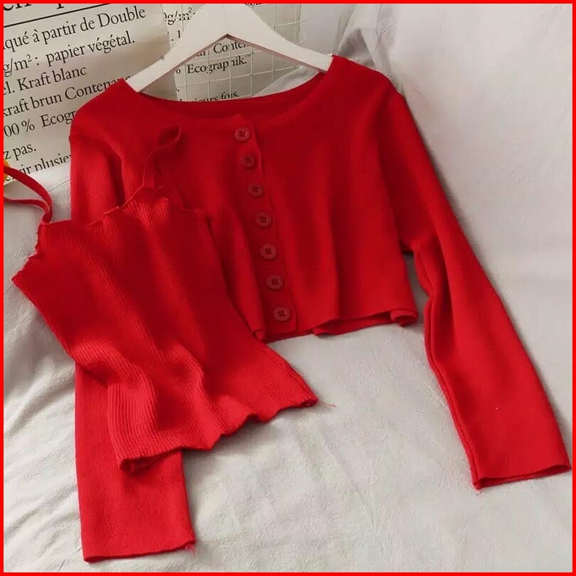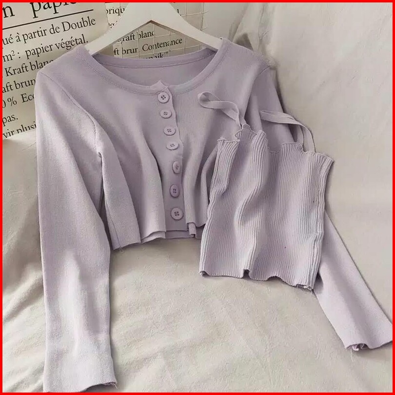 Atasan Wanita Cardigan 2in1 Set Come Rib