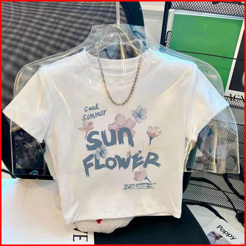 Crop Top Wanita Sun Flower Knit Rib Ld 88 P 40