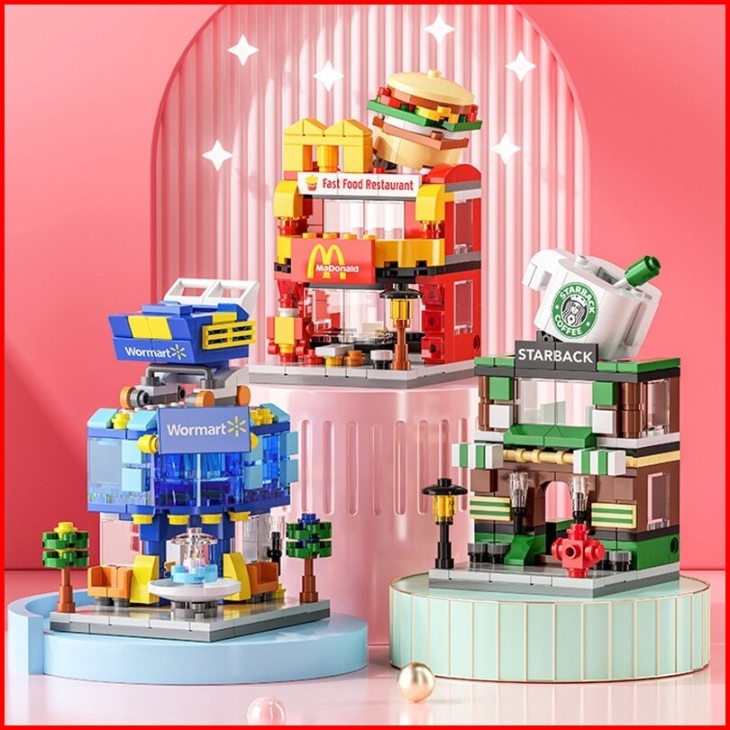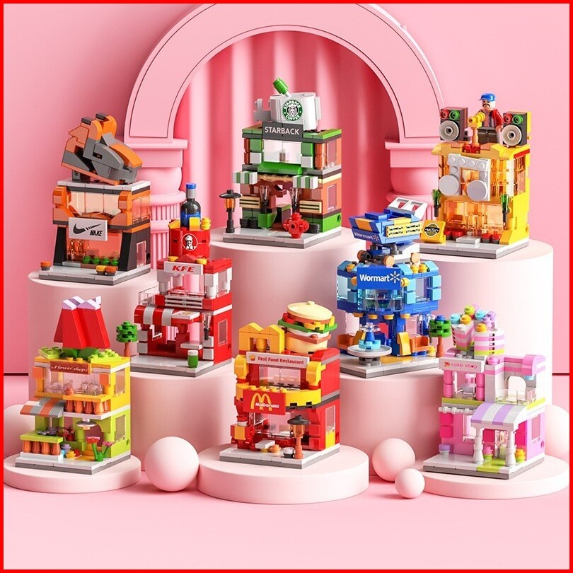 Sms Mainan Blok Seri Toko Burger Model Mainan Edukasi Mainan Bricks Anak Nano Block Kartun Mini Karakter Kartun Bricks B