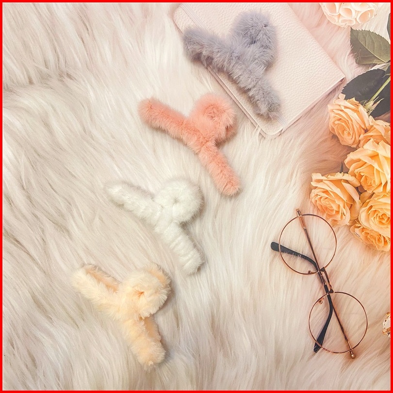 Sms Jedai Bulu Halus Motif Polos Jepit Rambut Gaya Korea Warna Soft Aksesoris Rambut Wanita Import