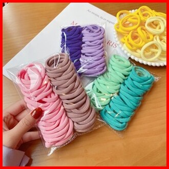 Sms Ikat Rambut Ponytail Elastis Wanita Motif Polos Kunciran Rambut Gaya Korea Isi 50 Free Tabung