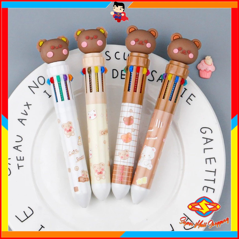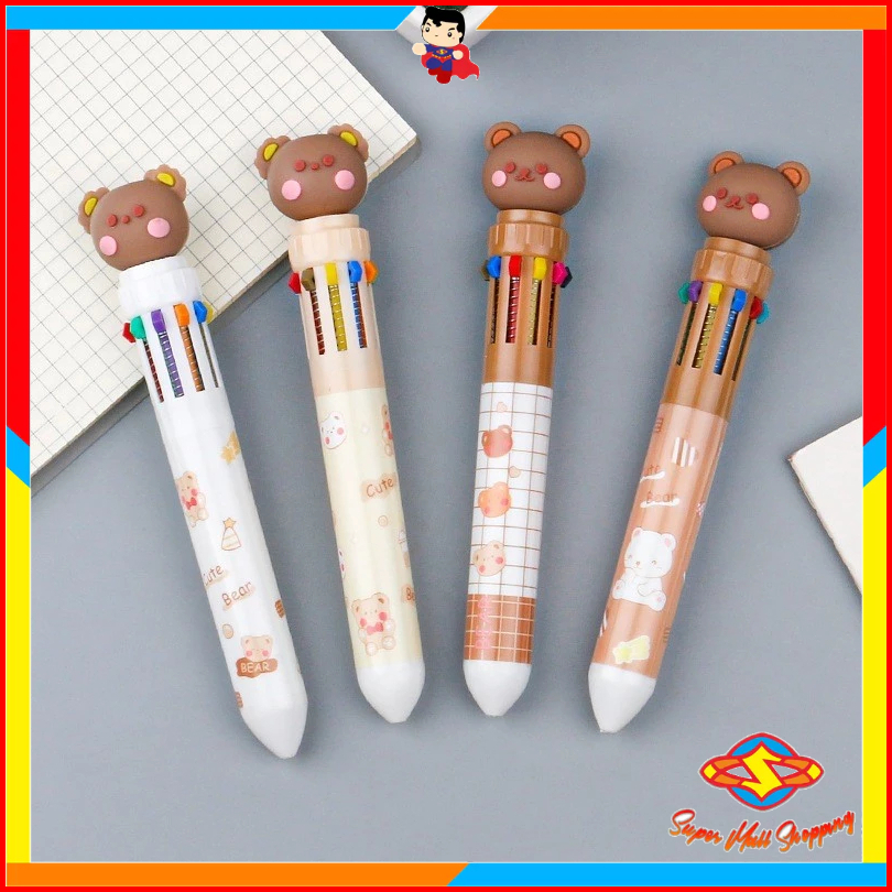Sms Alat Tulis Pena 10 In 1 Warna-warni Karakter Bear Pulpen Gel Warna Warni Untuk Sekolah Dan Kantor