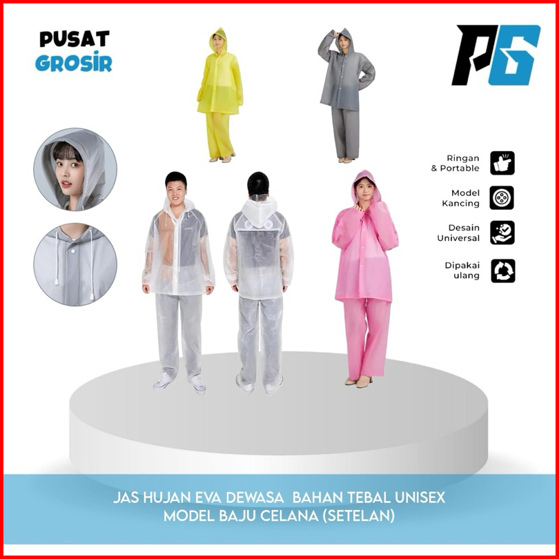 Jas Hujan Eva Dewasa Celana Baju 1 Pasang Setelan Bahan Tebal Raincoat Korea