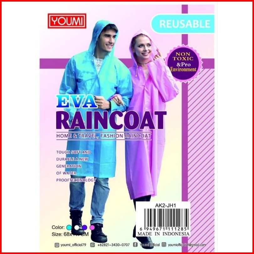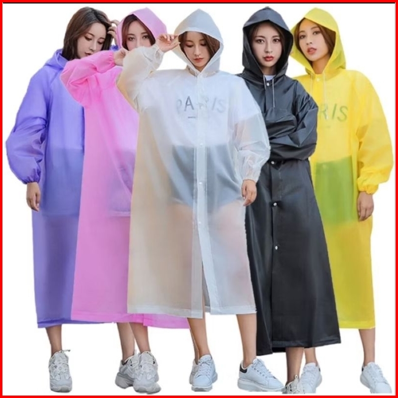 Jas Hujan Korea Raincoat Bahan Tebal Motor Motif Polos Dewasa Terusan Eva Original