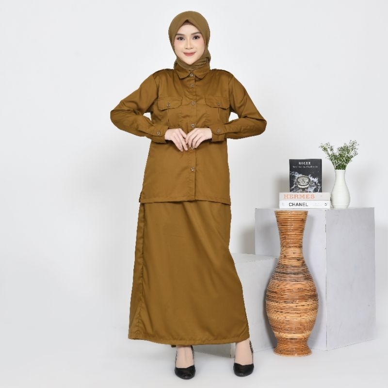 Seragam PNS Setelan Pemda Saku Dada Rok Span Dan Celana