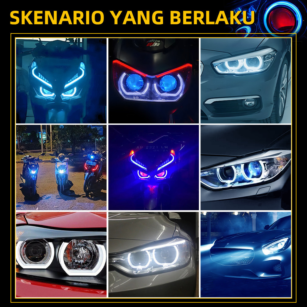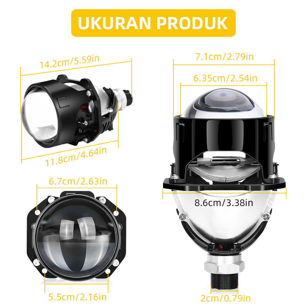 Lampu Projector Biled Turbo SE 2.5 Inch Shroud Bmw+Demon RHD/FLAT 100W Led Blue Lens RGB