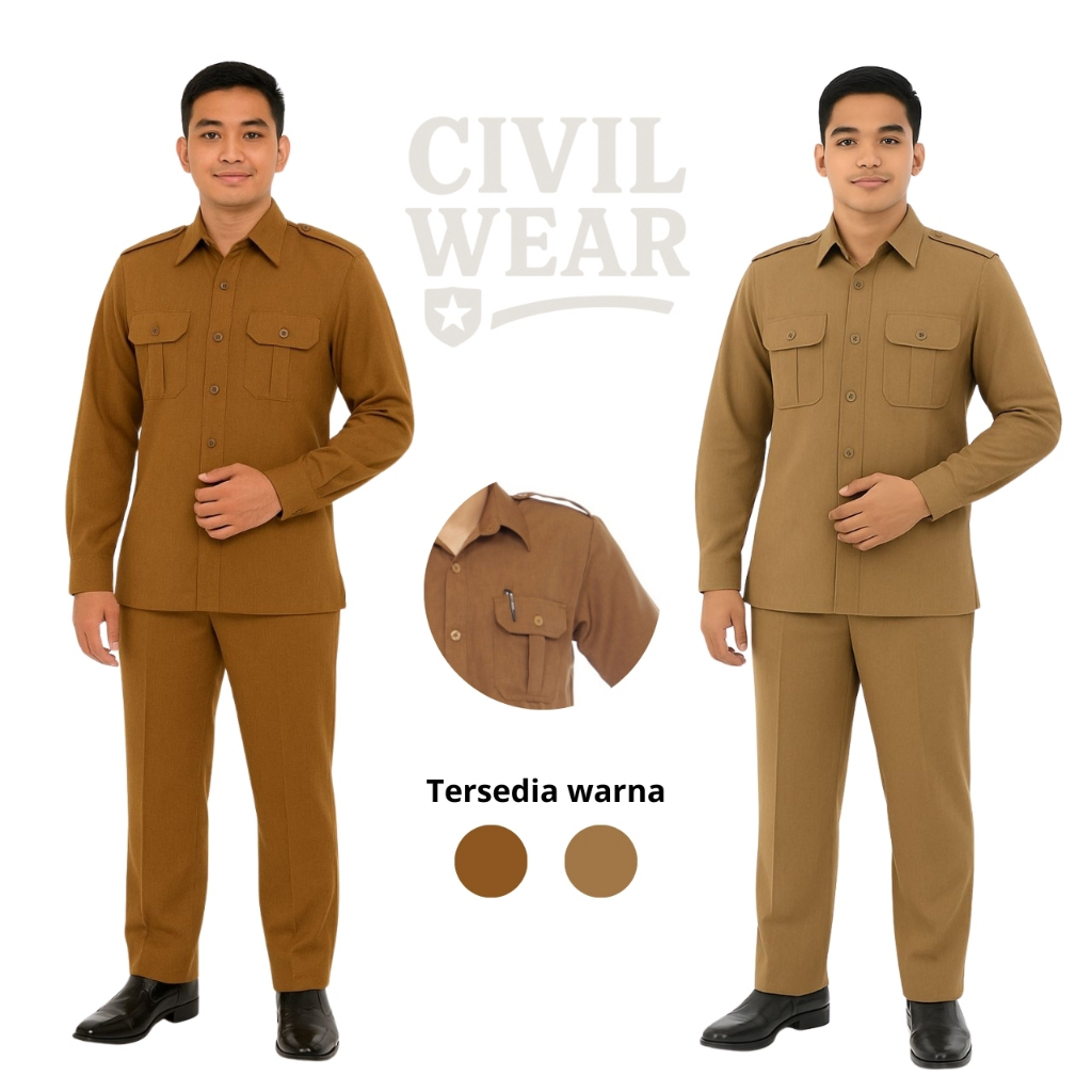 Setelan Seragam PNS Lengan Panjang Pria Baju PNS Seragam Guru Premium CIVIL WEAR