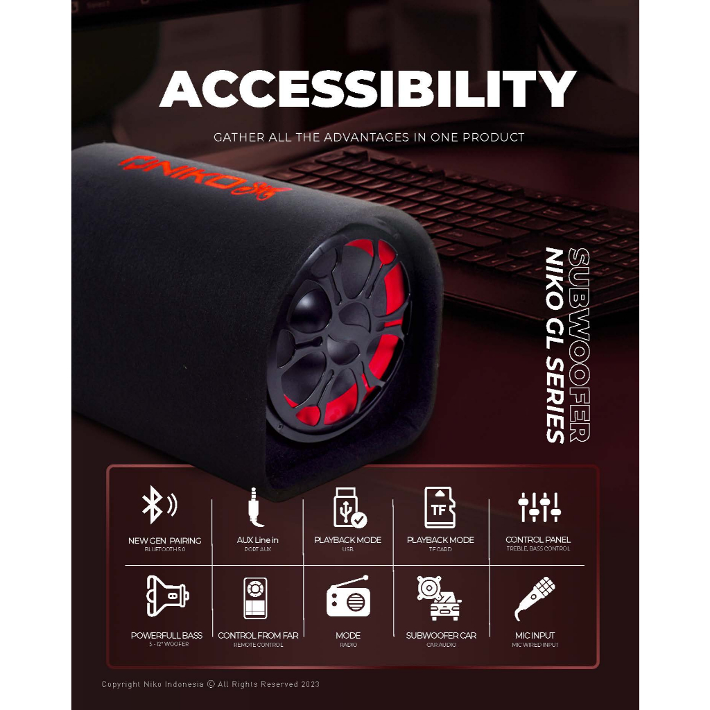 Speaker Tabung 6 inch / Subwoofer Speaker Niko GL 6 Bluettooh,Radio,USB/TF,Karaoke