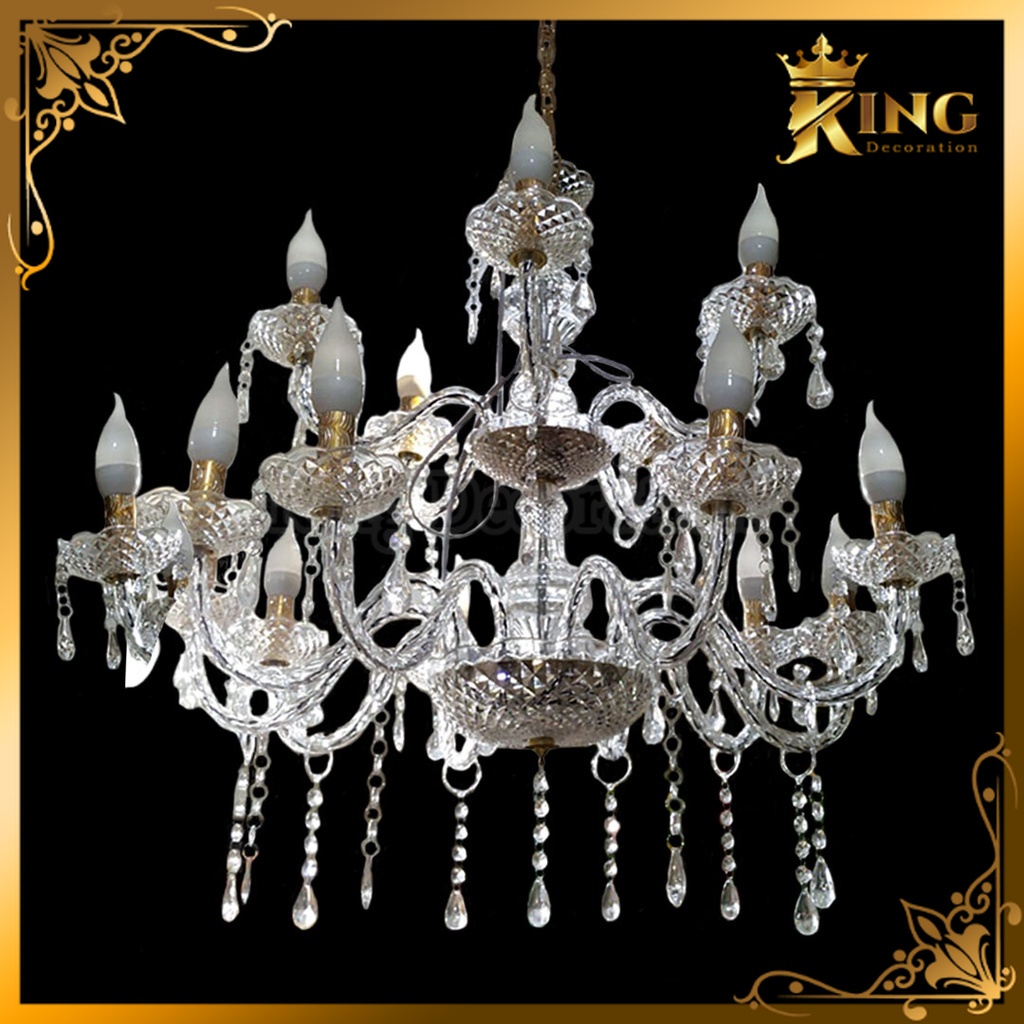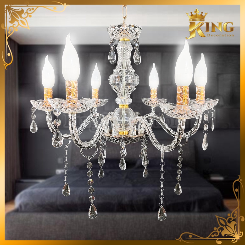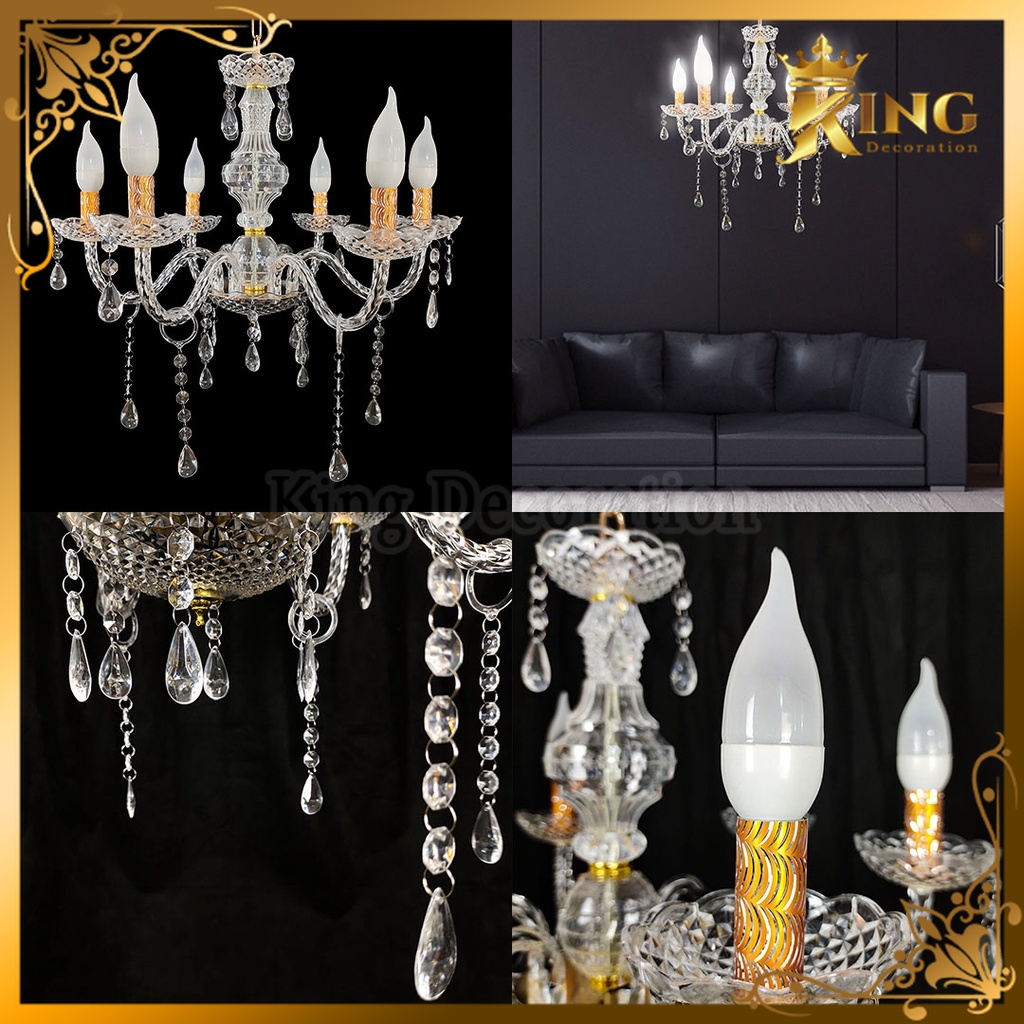 Lampu Lilin Gantung Chandelier Kristal Akrilik Cabang 6 Dan 15 Include Termasuk Lampu Lilin - Ruang Tamu Hias Lilin Kaca