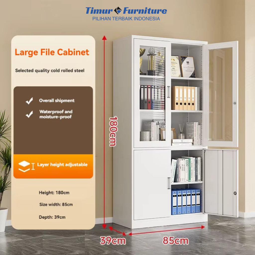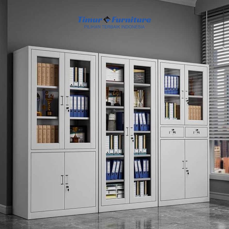 Lemari Arsip Besi 0,8Mm Minimalis Kaca Aesthetic Serbaguna Lemari Kabinet Besi Brankas Full Kaca