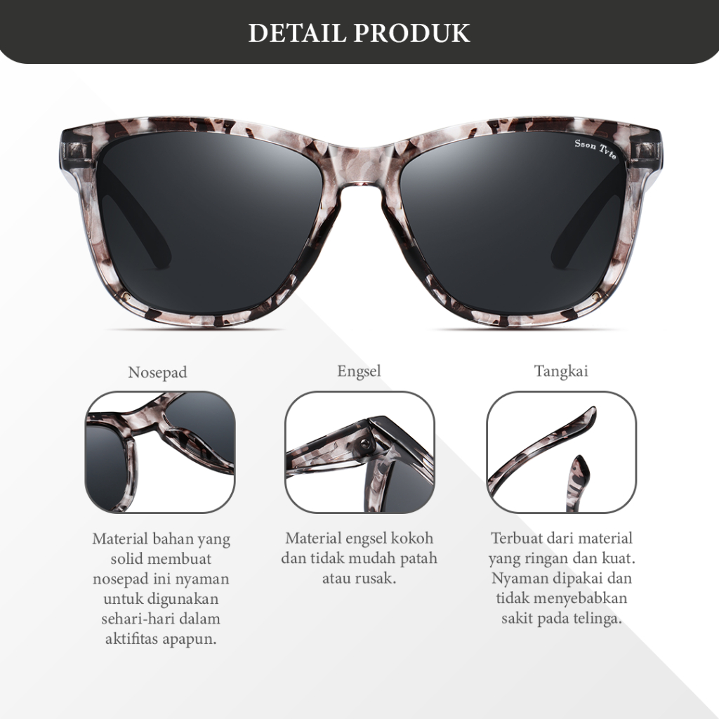 Sson Tvte Frame Kacamata Hitam Minus Polarized Sunglasses Pria Wanita Frame Wayfarer Pc 3382