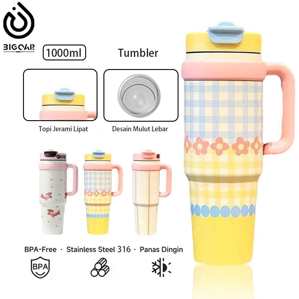 BIGCAR-Tumbler Fruity Bloom 1000ml Stainless SUS 316 / Tumbler Botol Minum 1000ml / Tumbler Viral / Tahan panas 6-8 jam, tahan dingin 12 jam