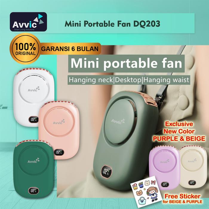 AVVIC KIPAS ANGIN MINI DQ203 PORTABLE HANGING NECK FAN MODEL GANTUNG LEHER - BEIGE+STICKER