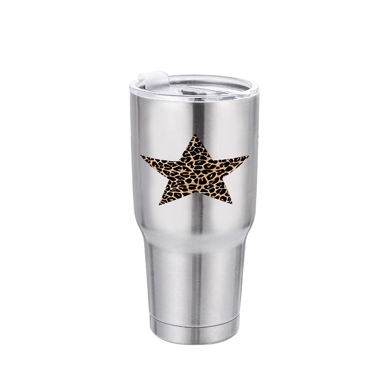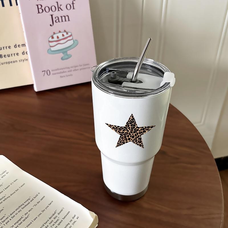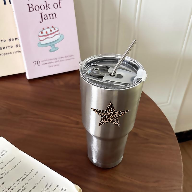 Tumbler Aesthetic Leopard Star Botol Minum Stainless Steel Tumblr Viral CUP 900 ML Termos Coffee Keep Cold Hot Tambler Portable Cangkir Kopi Gift - Tutup Kedap, Bisa Untuk Es Batu