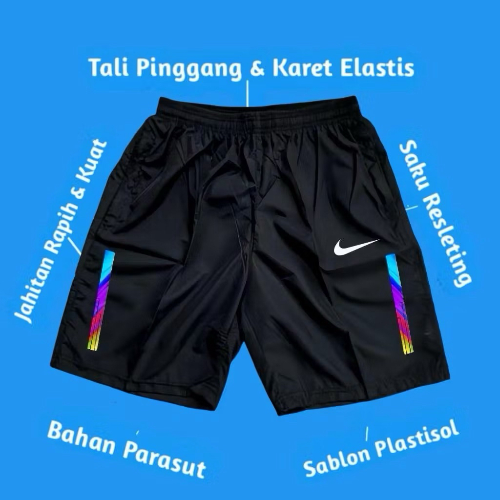 4 Pcs Celana Pendek Olahraga Parasut Saku Resleting Sport Gym Running