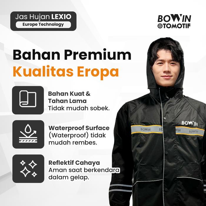 Bowin Jas Hujan Lexio Euro Technology - Original Garansi Anti Bocor Anti Rembes & Bahan Tebal Kuat - LEXIO HITAM Size L