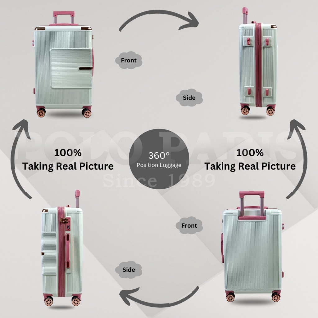 POLOPARIS - Koper Premium Lokal V7801 V7802 Size 20/24 Policarbonate + Fiber Kunci Tanam Kombinasi 3 Angka Aluminium