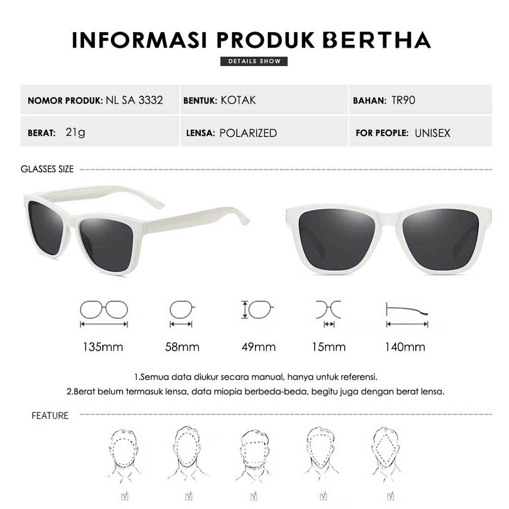 Bertha Kacamata Sunglasses Polarized Style Kotak Trendy Bahan Tr90 Fashion Trendy Pria Dan Wanita Simple 3332 3088