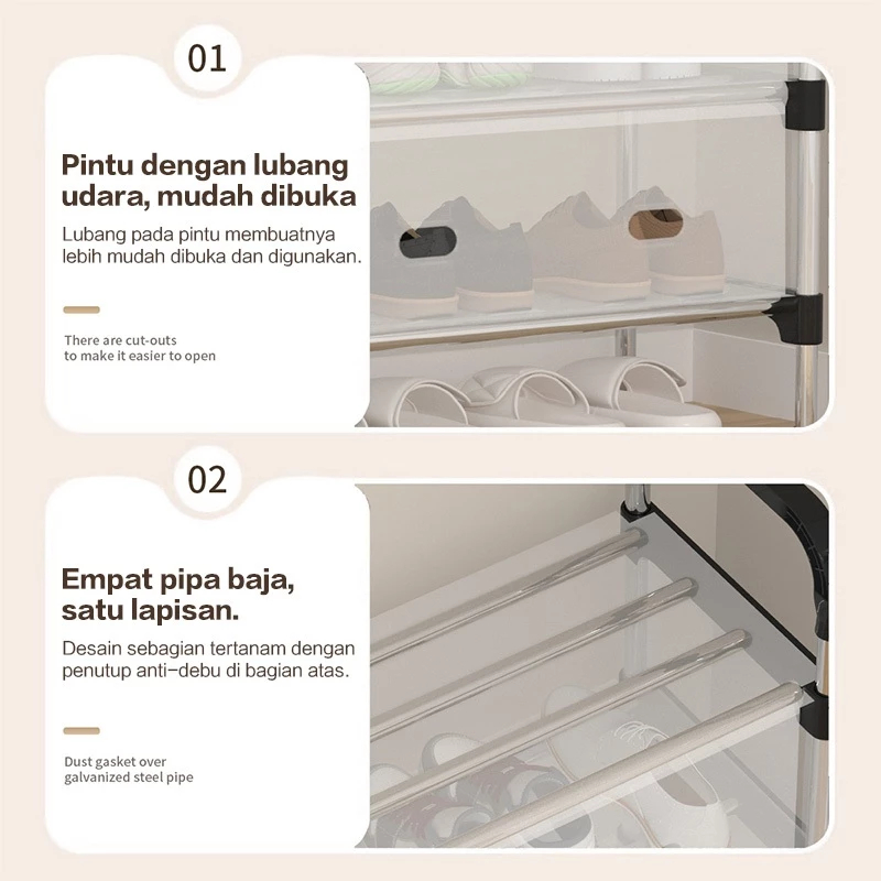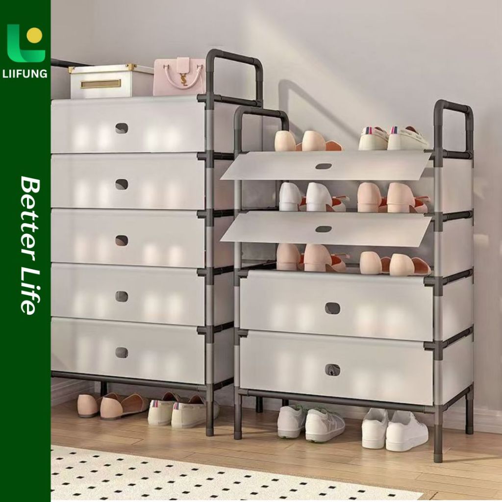 LiiFung - Rak Sepatu Susun Tertutup Anti Debu 3-6 Susun Besi Kokoh | Shoe Rack Serbaguna Aesthetic