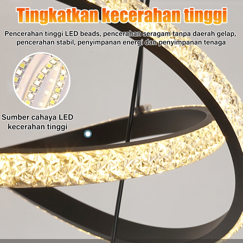 Lampu Gantung Dekoratif Minimalis Kristal Led 3 Warna - Mewah Untuk Ruang Tamu, Ruang Makan, Dan Restoran