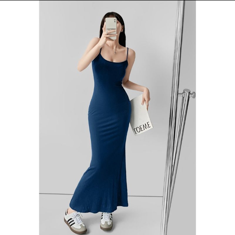 Dress Maxi Tengtop Wanita Model Panjang Bahan Spandek Premium - MAXi LONG DRESS PARTY KOREAN STYLE BODYCON TERLARIS - Simple, Formal Mini Gaun Fit Pendek Hitam Midi
