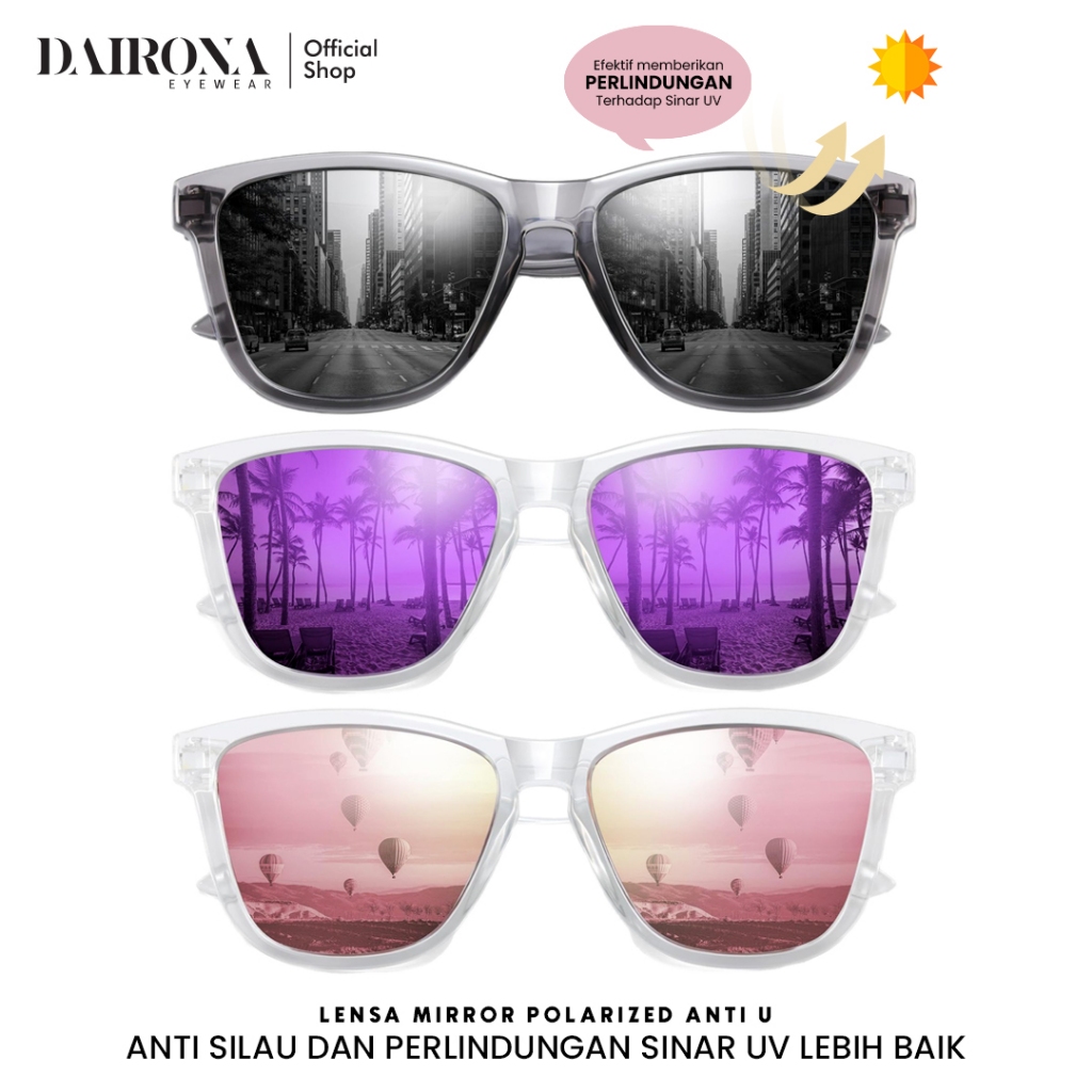 Dairona Eyewear Kacamata Hitam Kotak Sunglasses Fashion Korean Style Terbaru Pria Wanita Uv400 Polarized Anti Silau 3332