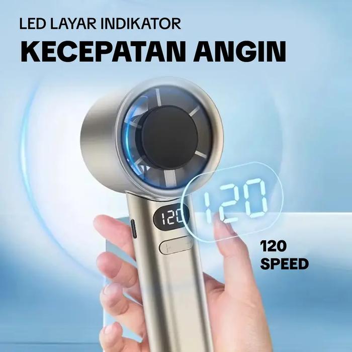 KIPAS ANGIN MINI PORTABLE 120 SPEED TAMPILAN DIGITAL LCD, TURBO, PENDINGINAN CEPAT, ISI ULANG USB - GRAY