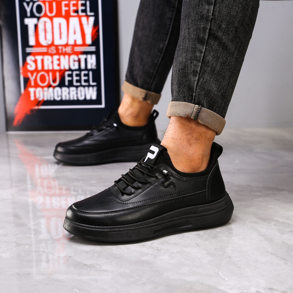 PAULMAY Ignite Pria Sepatu Sneakers Casual Kuliah Kerja Hangout Nyaman Ringan Anti-Slip Trendy Hitam