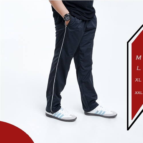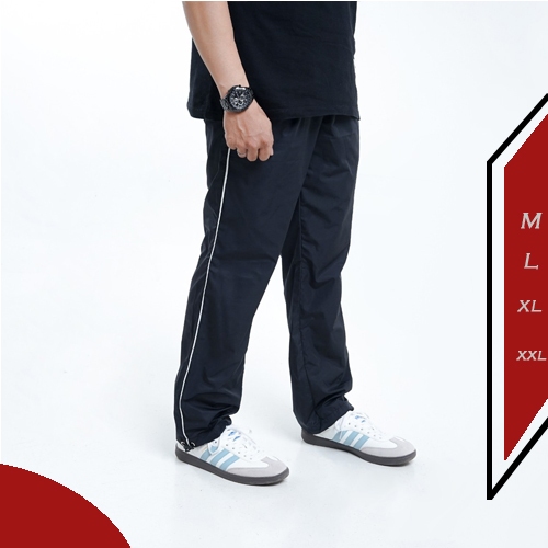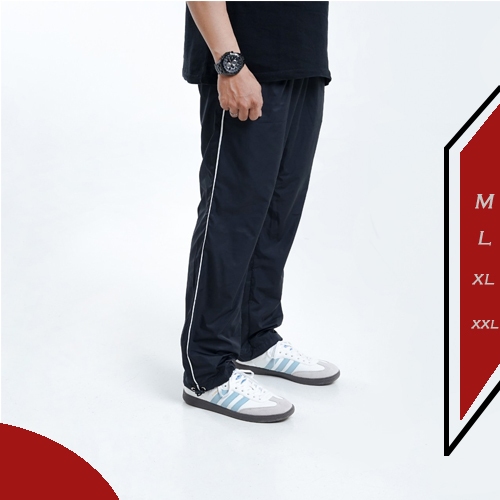 Ezry X Celana Parasut Panjang Strip Baggy Track Long Pants Loose Olahraga Kasual Pria Wanita Hitam