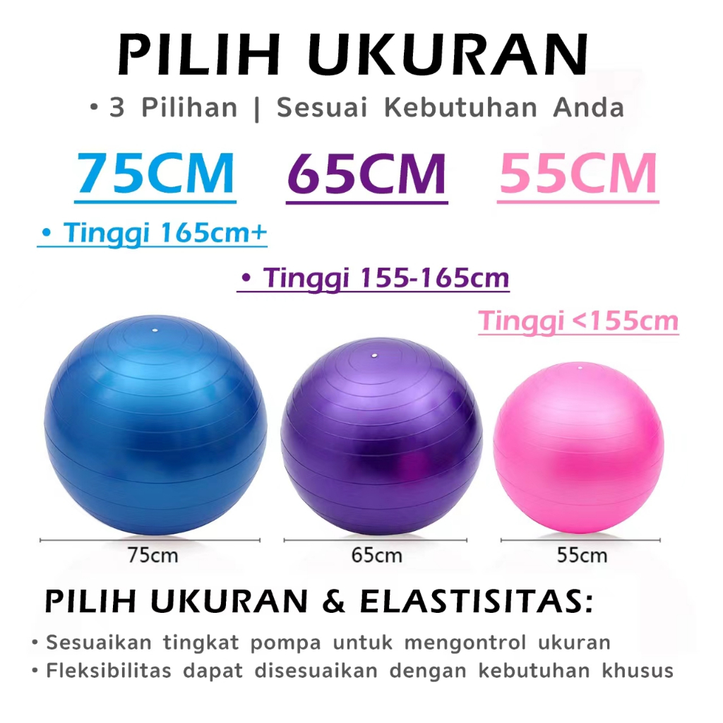 Bola Yoga Multifungsi – Gymball Ball 55cm, 65cm, 75cm untuk Latihan Efektif di Rumah