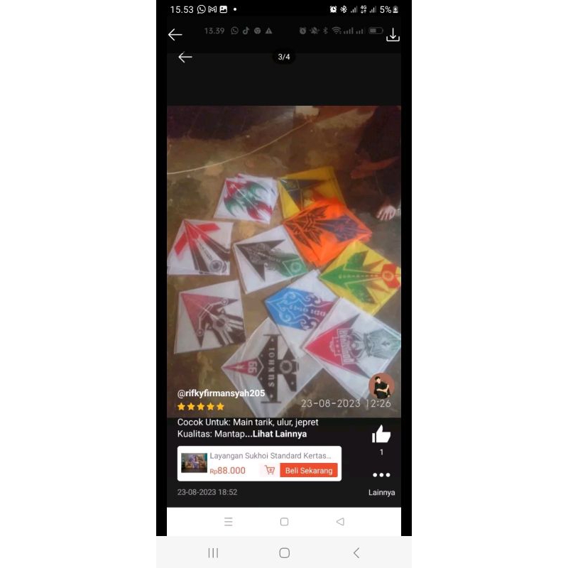 Layangan Sukhoi Standard Kertas Minyak sablon sembur, 1 paket isi 50 layangan