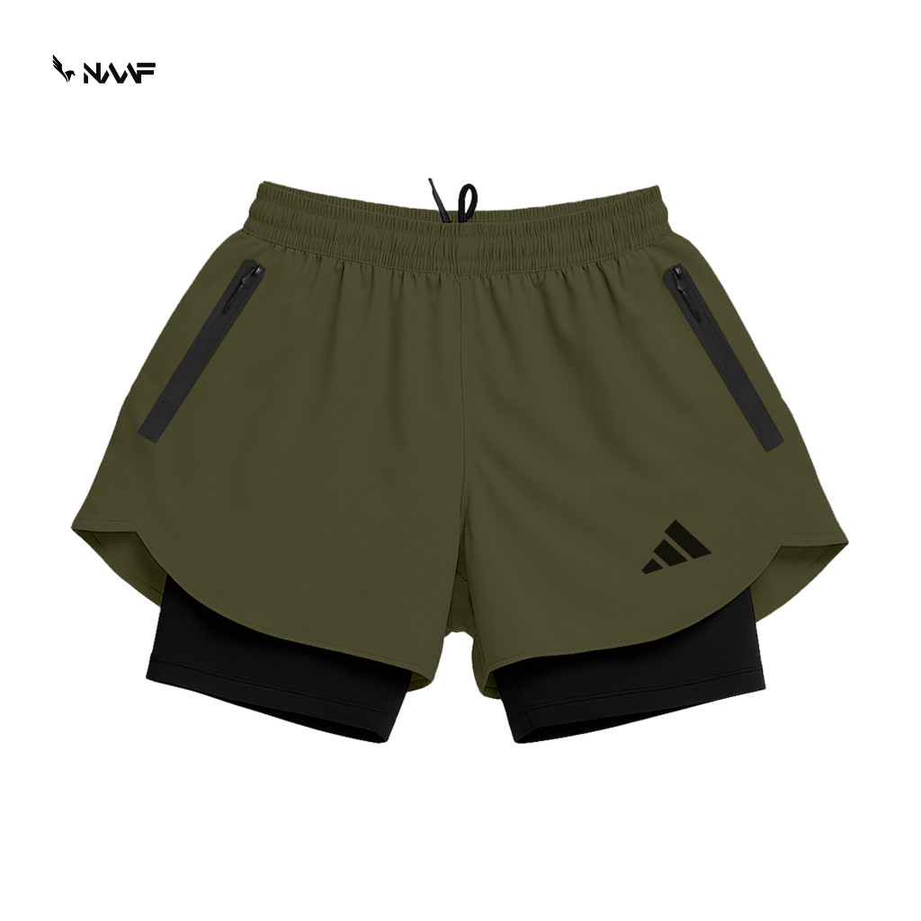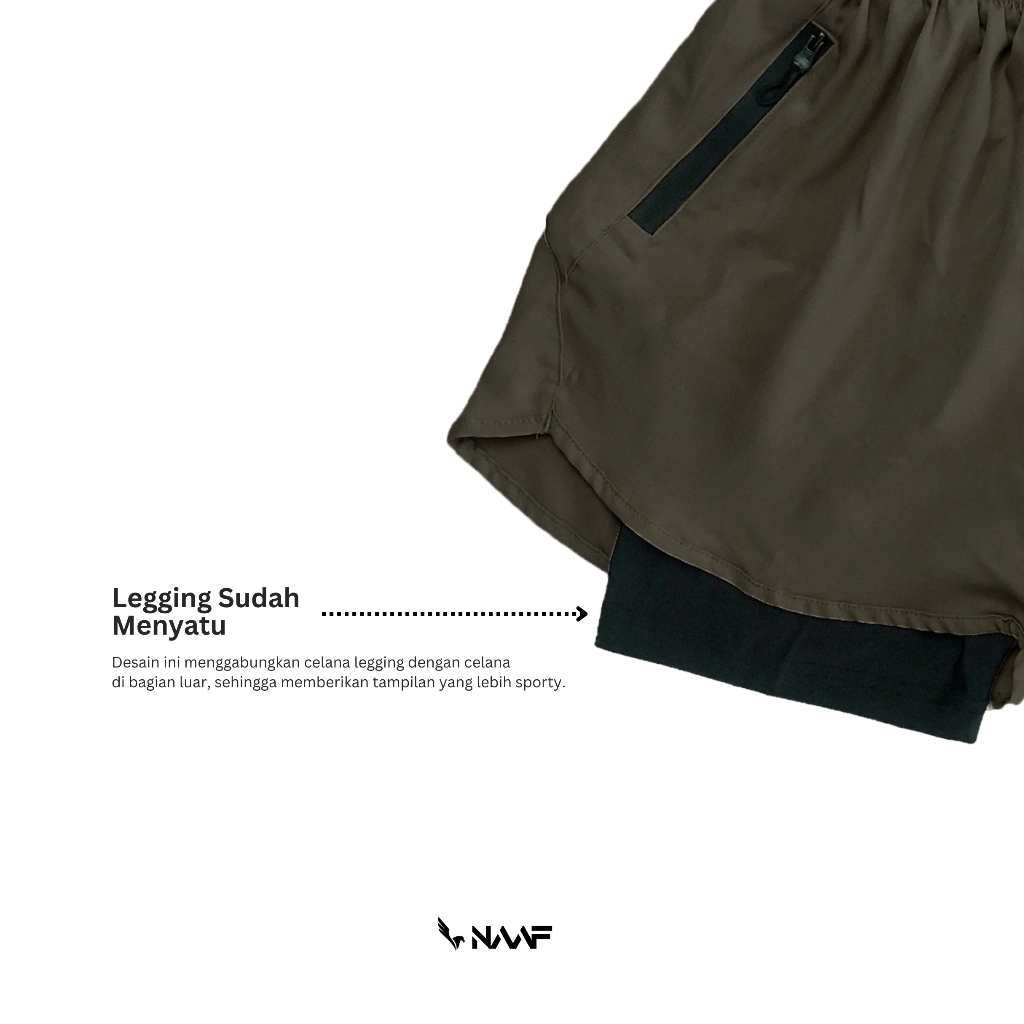 Naaf - Celana Running Legging 2In1 Pendek Olive Pria Wanita Sport Lari Badmintoon Outdoor Micro Parasut Premium