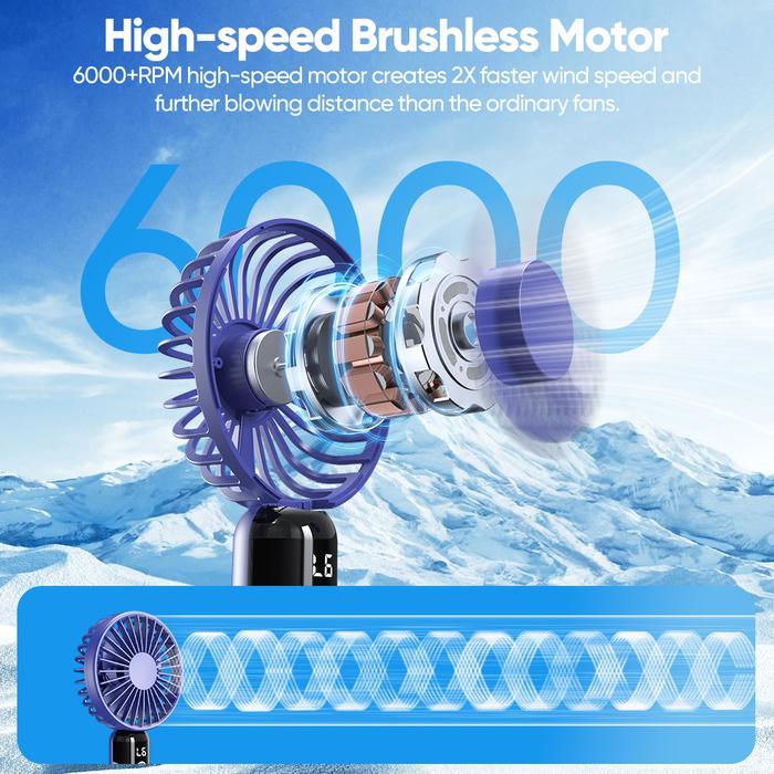 GOOJODOQ KIPAS ANGIN MINI 5000MAH 6-SPEED WIND KIPAS GENGGAM PORTABEL LED DISPLAY PORTABLE HANDHELD FAN AROMATERAPI KIPA