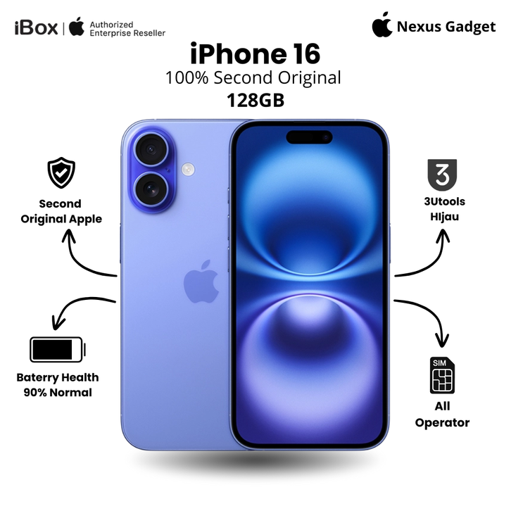 [Mall] Hp Apple iPhone 16 128GB Ultramarine Second Original 100% New IP 16 Fullset Like New Mulus Promo Garansi Resmi