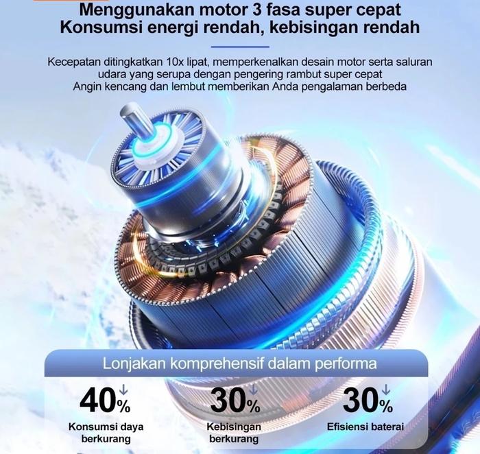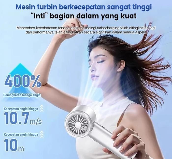 KIPAS ANGIN PORTABLE 15000MAH TURBO MINI TANGAN GENGGAM MINI FAN TAMPILAN DAYA LCD 120 GIGI - GREY